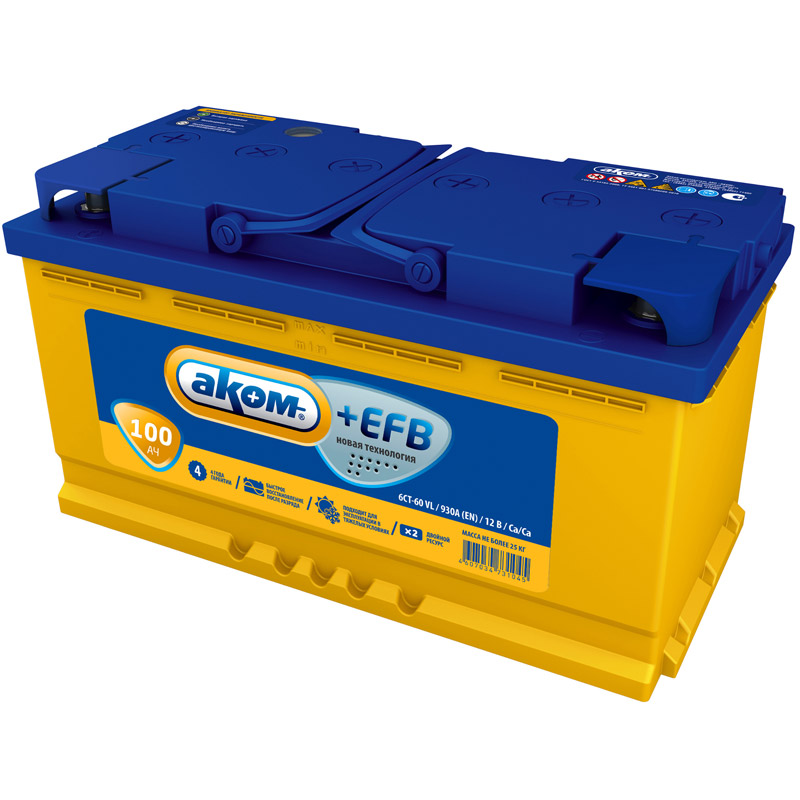Главная / Каталог автомобильных товаров / Аккумуляторы / Автомобильные аккумуляторы / АКБ Аком EFB 100 А/ч п.п. ток 950 353х175х190 6СТ-100,1