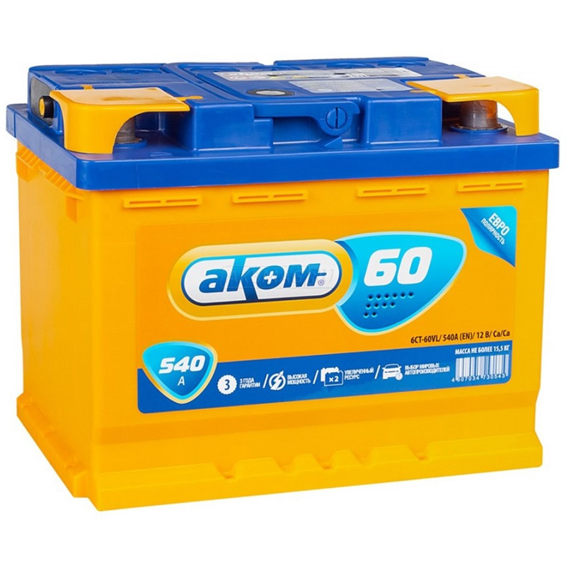 Купите аккумулятор АКБ 60 а/ч АКОМ 540A о.п. 242х175х190 4607034730543. Цена 7150 рублей. Также в каталоге 65 моделей аккумуляторных батарей Аком и аккумуляторы других производителей.