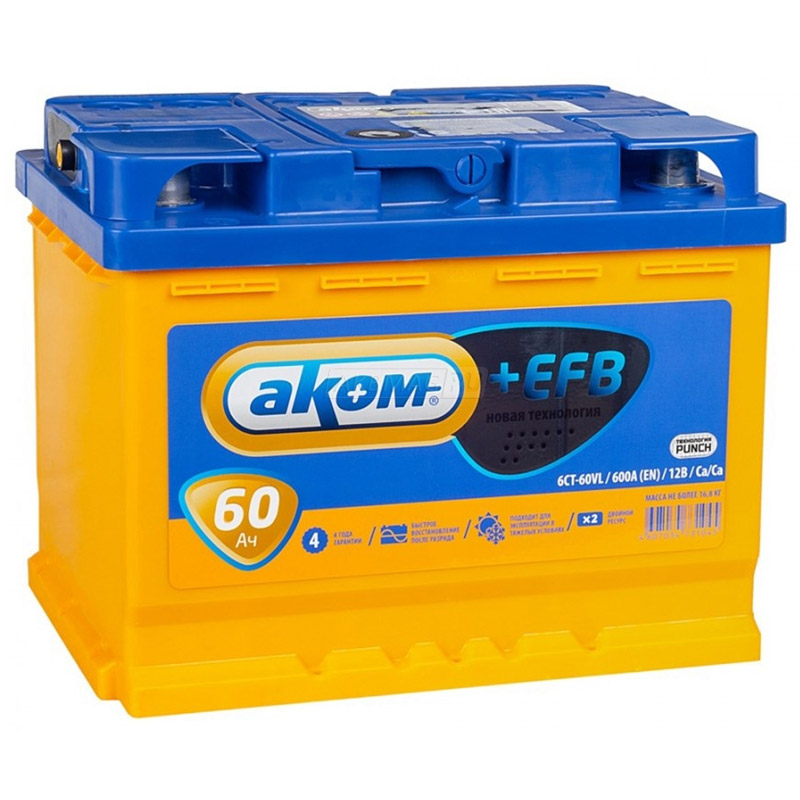 Купите аккумулятор АКБ АКОМ EFB VL 60 А/ч 600А 242х175х190 п.п. 4607034731045. Цена 7981 рублей. Также в каталоге 65 моделей аккумуляторных батарей Аком и аккумуляторы других производителей.