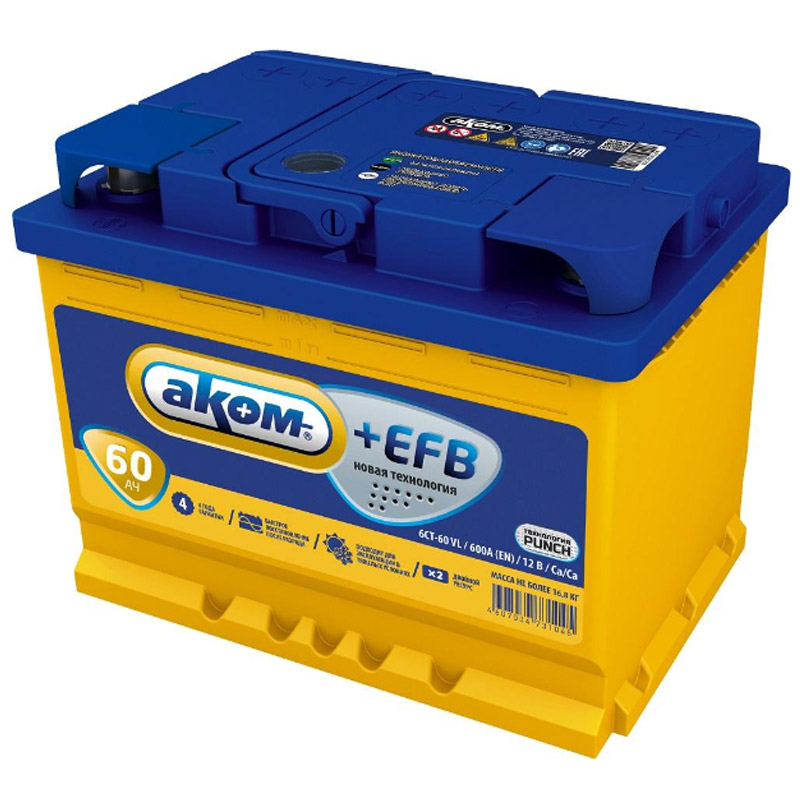 Купите аккумулятор АКБ АКОМ EFB VL Euro 60 А/ч 600А 242х175х190 о.п. 4607034731052. Цена 7981 рублей. Также в каталоге 65 моделей аккумуляторных батарей Аком и аккумуляторы других производителей.