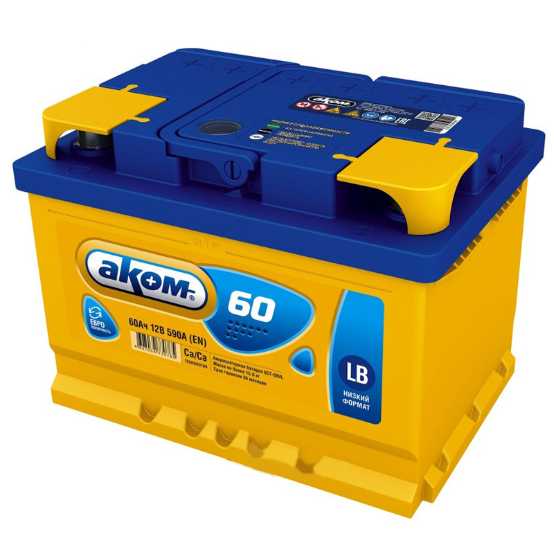 Купите аккумулятор АКБ АКОМ VL Euro низ. 60 А/ч 590А 242х175х175 о.п. 4607034730765. Цена 7354 рублей. Также в каталоге 65 моделей аккумуляторных батарей Аком и аккумуляторы других производителей.