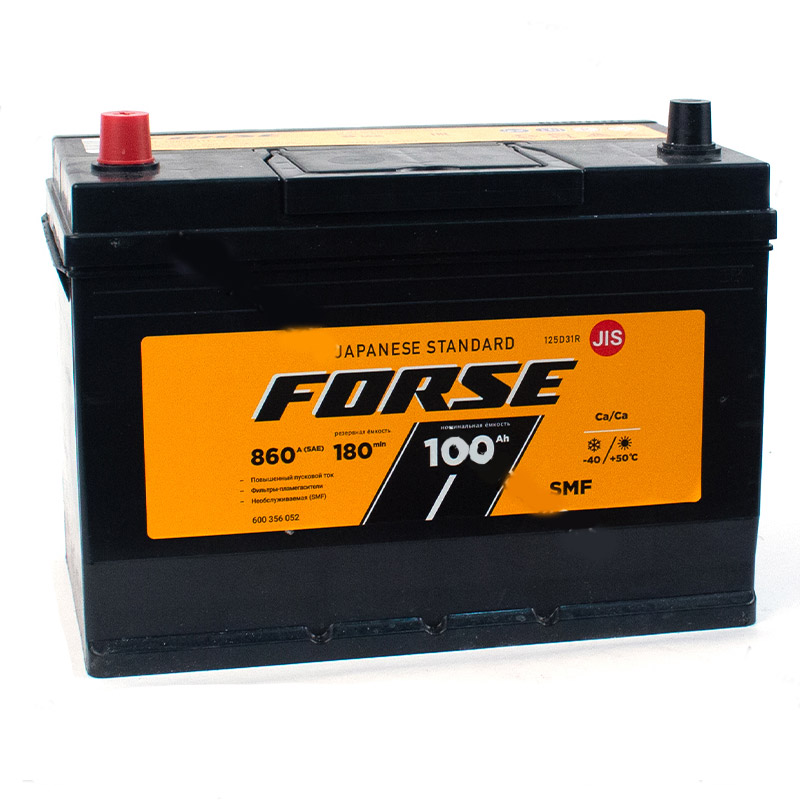 Forse japanese standard — серия необслуживаемых аккумуляторных батарей «азиатских» типоразмеров. Аккумуляторы с повышенными пусковыми токами. Предназначены для автомобилей с увеличенным количеством энергопотребителей. Особенности конструкции: –увеличенное количество электродов –двойная лабиринтная крышка без доступа к банкам, необслуживаемые (SMF технология) –газоотводные каналы укомплектованы фильтрами-пламегасителями. Полностью необслуживаемые. SMF (Sealed Maintenance Free) — закрытые необслуживаемые аккумуляторы.