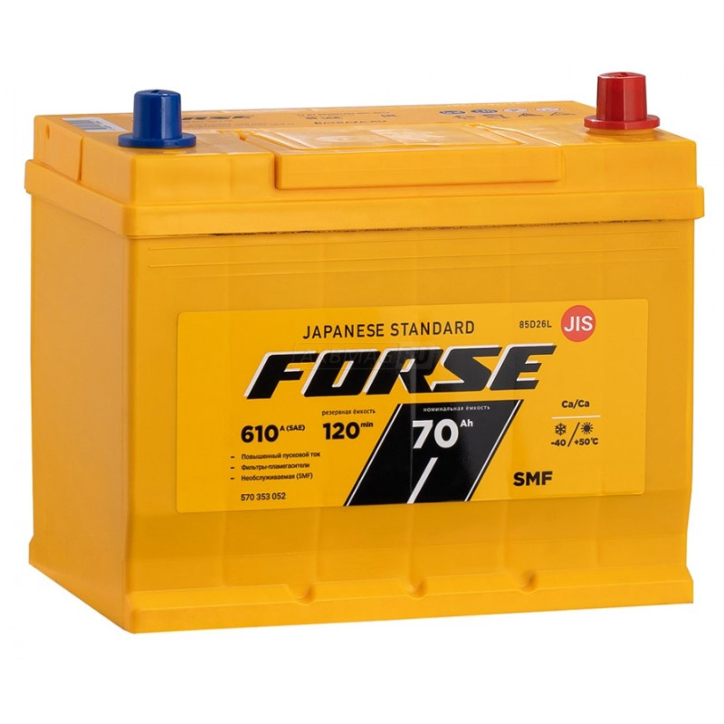 Купите аккумулятор АКБ Forse Asia 70 А/ч о.п. ток 610 261х175х225 70 VL (0) D26. Цена 8114 рублей. Также в каталоге 18 моделей аккумуляторных батарей FORSE и аккумуляторы других производителей.