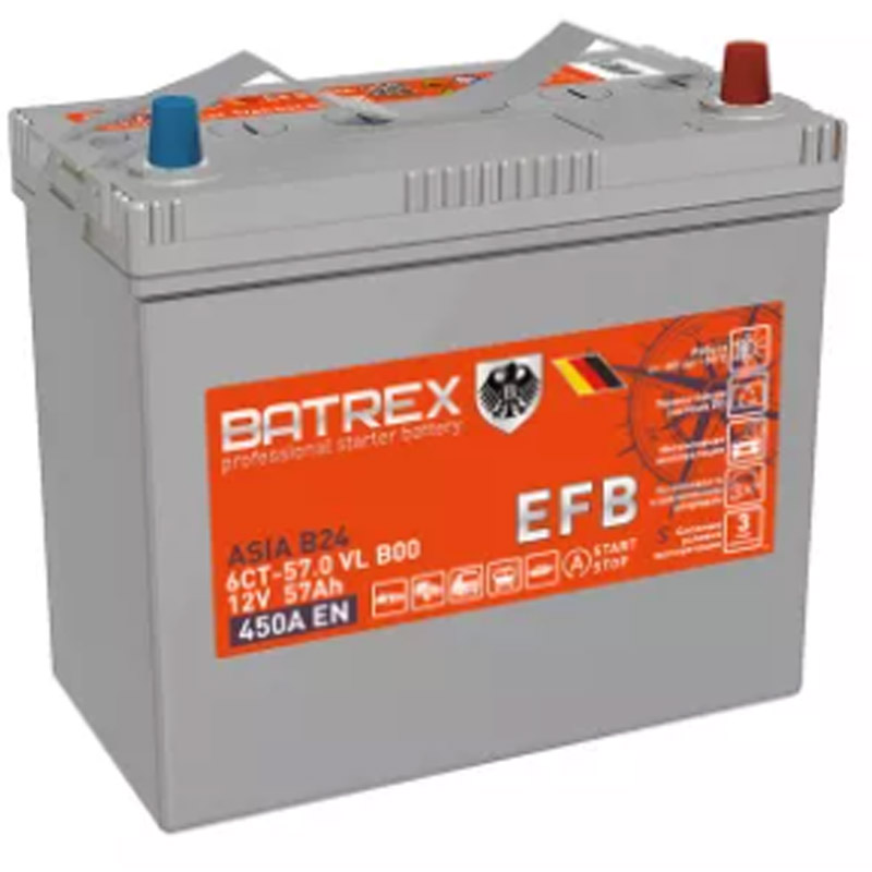 Купите аккумулятор АКБ Batrex ASIA EFB 57 Ah 450 A 236х128х223 о.п. 4610082700345. Цена 0 рублей. Также в каталоге 12 моделей аккумуляторных батарей Batrex и аккумуляторы других производителей.