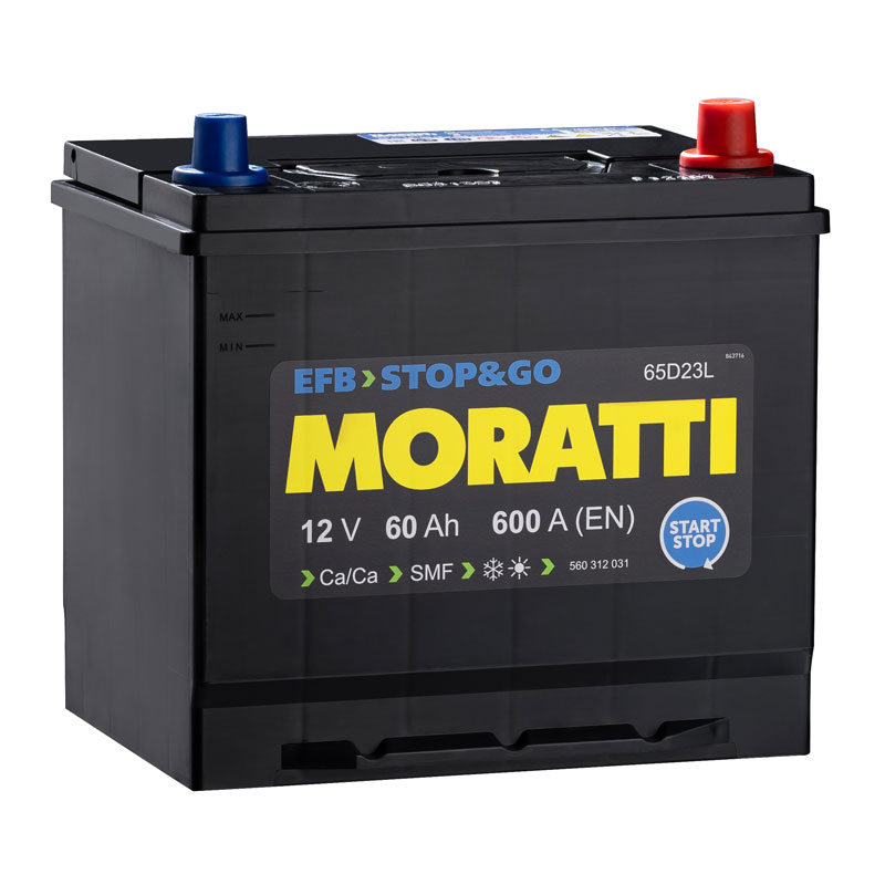 Главная / Каталог автомобильных товаров / Аккумуляторы / Автомобильные аккумуляторы / АКБ Moratti EFB Asia 60 А/ч о.п. ток 600 230х173х220
