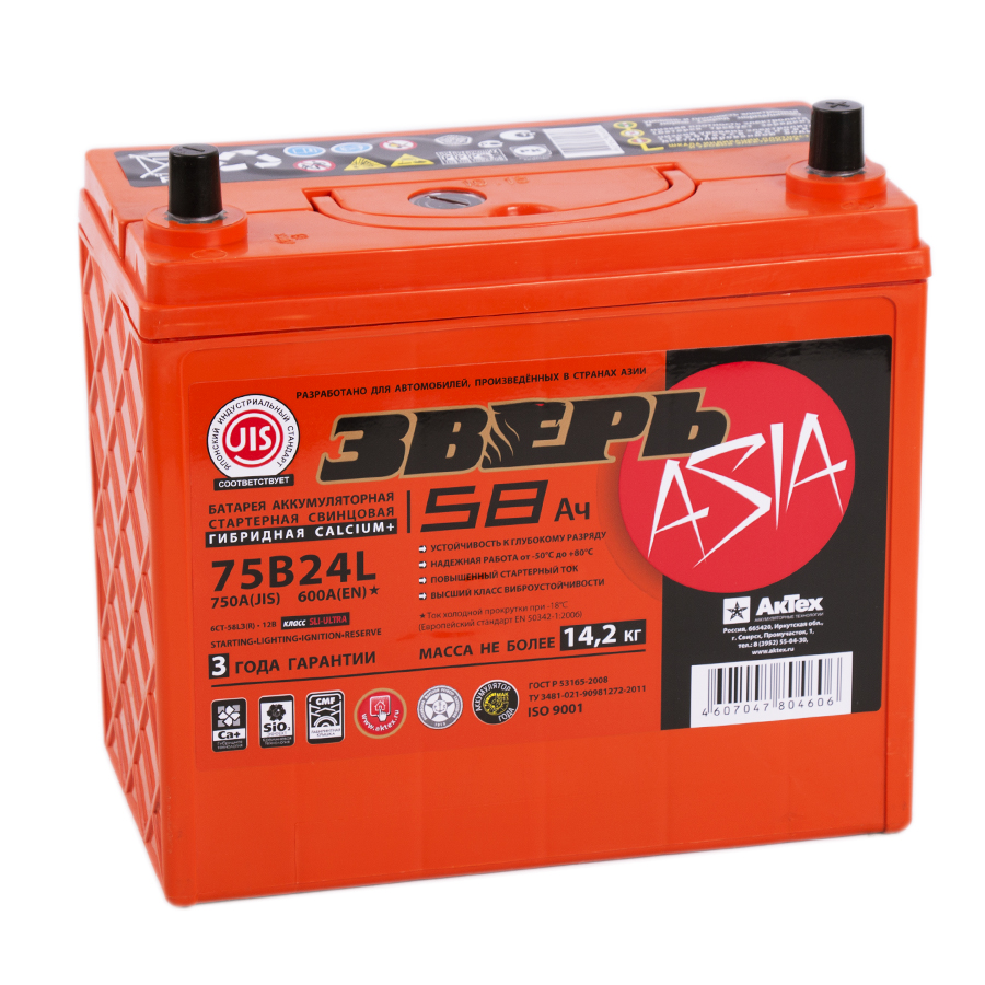 АКБ «ЗВЕРЬ Азия» вобрала в себя все лучшее от батареи «ЗВЕРЬ»: качество, надежность, а теперь и возможность использования на азиатских авто. Акб «ЗВЕРЬ Азия» полностью соответствует требованиям Японского Индустриального Стандарта (JIS), а также является призером многих независимых текстов по качеству.
