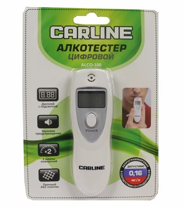 Алкотестер Carline ALCO-100 настроен на нормы Российского законодательства. В случае превышения допустимого содержания алкоголя в крови, прибор издает предупреждающий сигнал. Результаты измерений могут быть выведены на экран в двух величинах – промилле(0/00) и BAC(%).