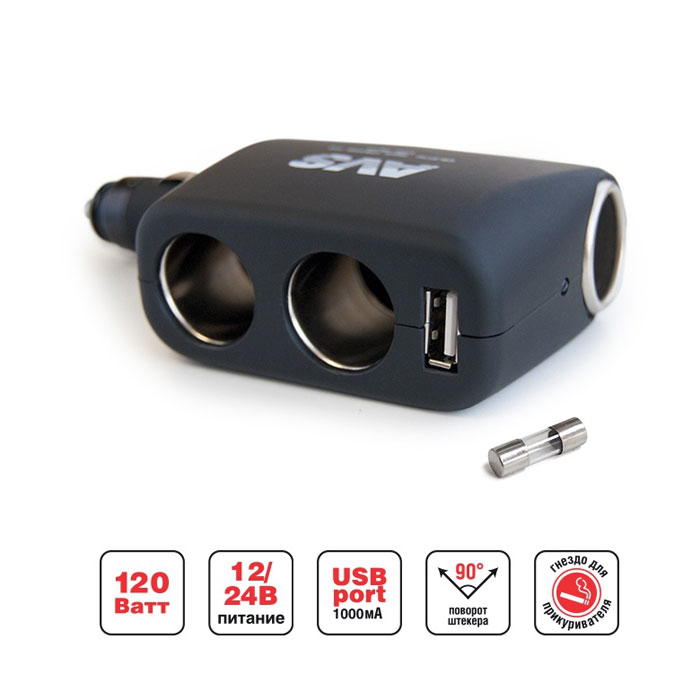 Главная / Каталог автомобильных товаров / Автоэлектроника / Разветвители прикуривателя / Разветвитель прикуривателя 3 гнезда AVS CS311U 12/24В USB черный