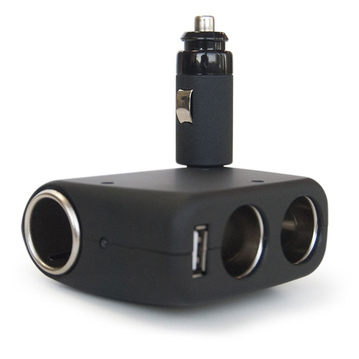 Разветвитель позволяет подключать до 4-х устройств одновременно в разъем прикуривателя через 3 собственных разъема прикуривателя и USB порт. 1 из гнёзд классическое, с возможностью прикуривания от него сигарет. Крепкое надежное устройство в корпусе из огнестойкого пластика. Защита от короткого замыкания и перепадов напряжения. Возможность установки в любой части автомобиля, благодаря проводу длиной 1 метр. Работа в сетях с номинальным напряжением 12В и 24В. Универсален для любых автомобилей.