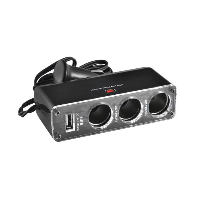 Главная / Каталог автомобильных товаров / Автоэлектроника / Разветвители прикуривателя / Разветвитель прикуривателя 3 гнезда Skyway SW-1913/S02301008 USB черный