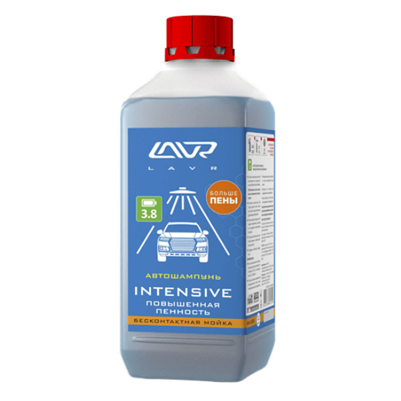 Главная / Каталог автомобильных товаров / Автохимия для ухода за автомобилем / Для кузова / Автошампунь для б/мойки Lavr Intensive повышенная пенность 1,1л