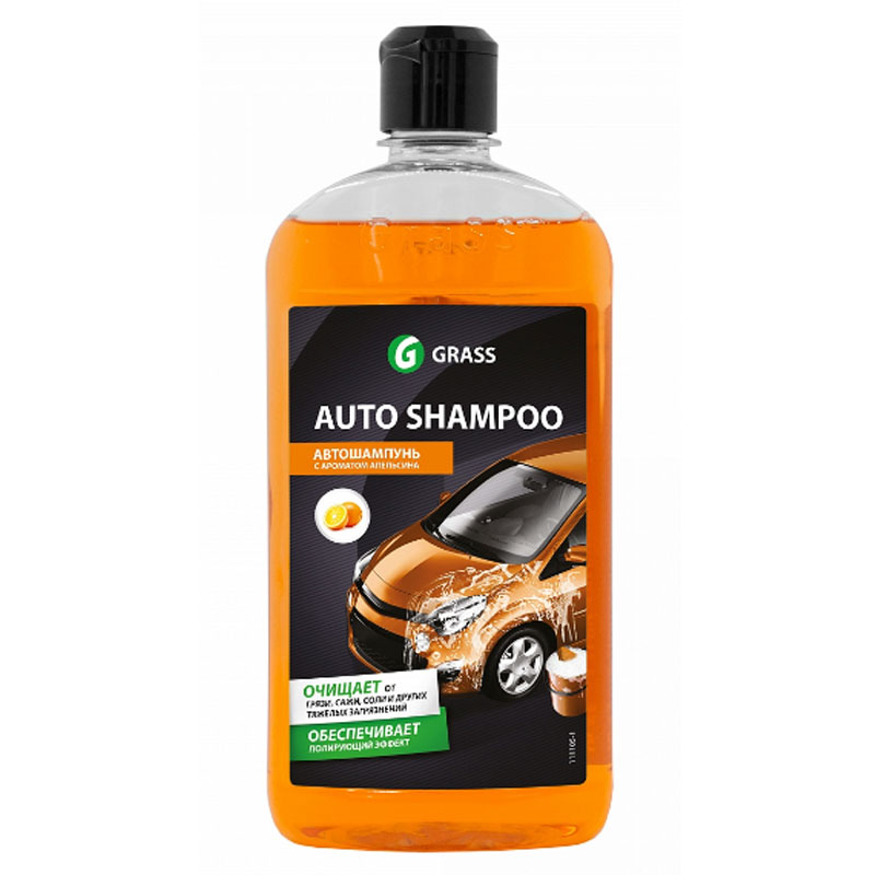 Концентрированный автошампунь Grass «Auto Shampoo» для эффективной очистки лакокрасочных поверхностей автомобиля от грязи, сажи, масляных пятен, соли и других тяжелых эксплуатационных загрязнений. Обеспечивает полирующий эффект. Автошампунь не оказывает раздражающего воздействия на кожу рук.