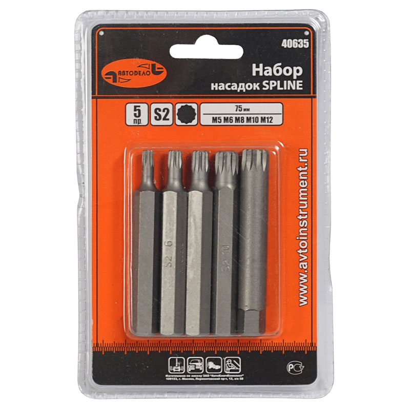 Технические характеристики товара «Набор бит Автодело Spline 5 пр. М5-12 L=75 мм 40635»
