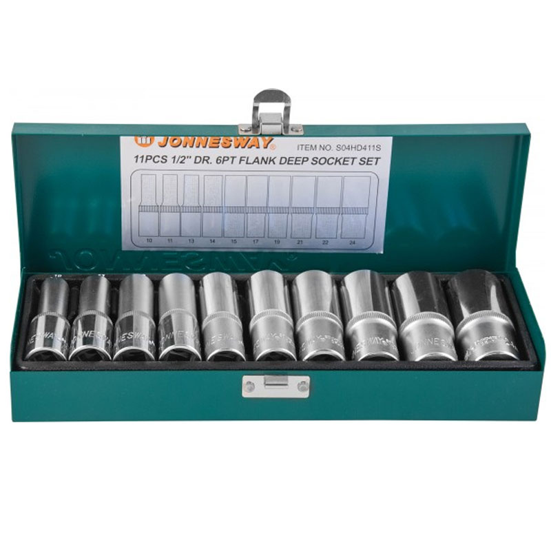 Главная / Каталог автомобильных товаров / Автоинструменты и оборудование / Головки, биты / Набор головок Jonnesway глубоких 1/2"" 11 пр. 6 гр. 10-24 мм S04HD411S