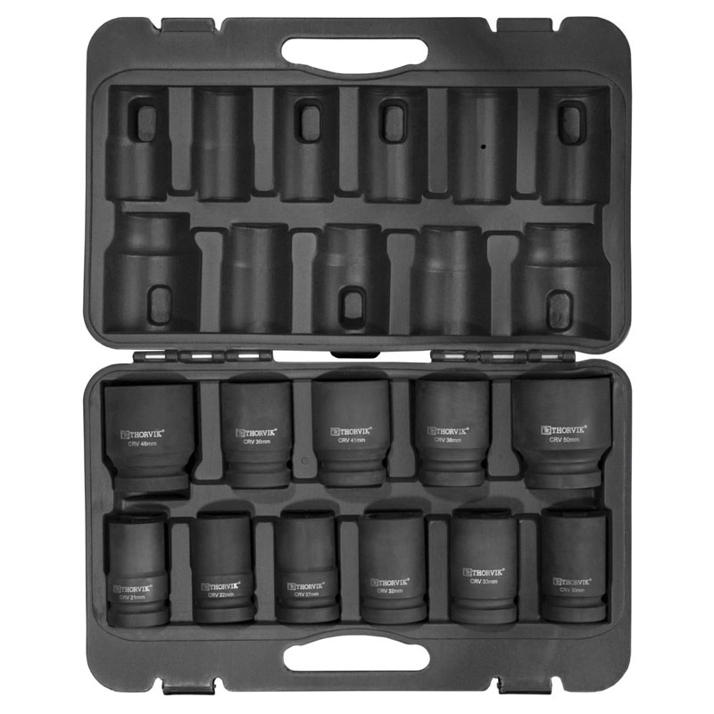 Главная / Каталог автомобильных товаров / Автоинструменты и оборудование / Головки, биты / Набор головок Thorvik ударных для гайковерта 1" 21-50 мм 11 пр. LSWS11S
