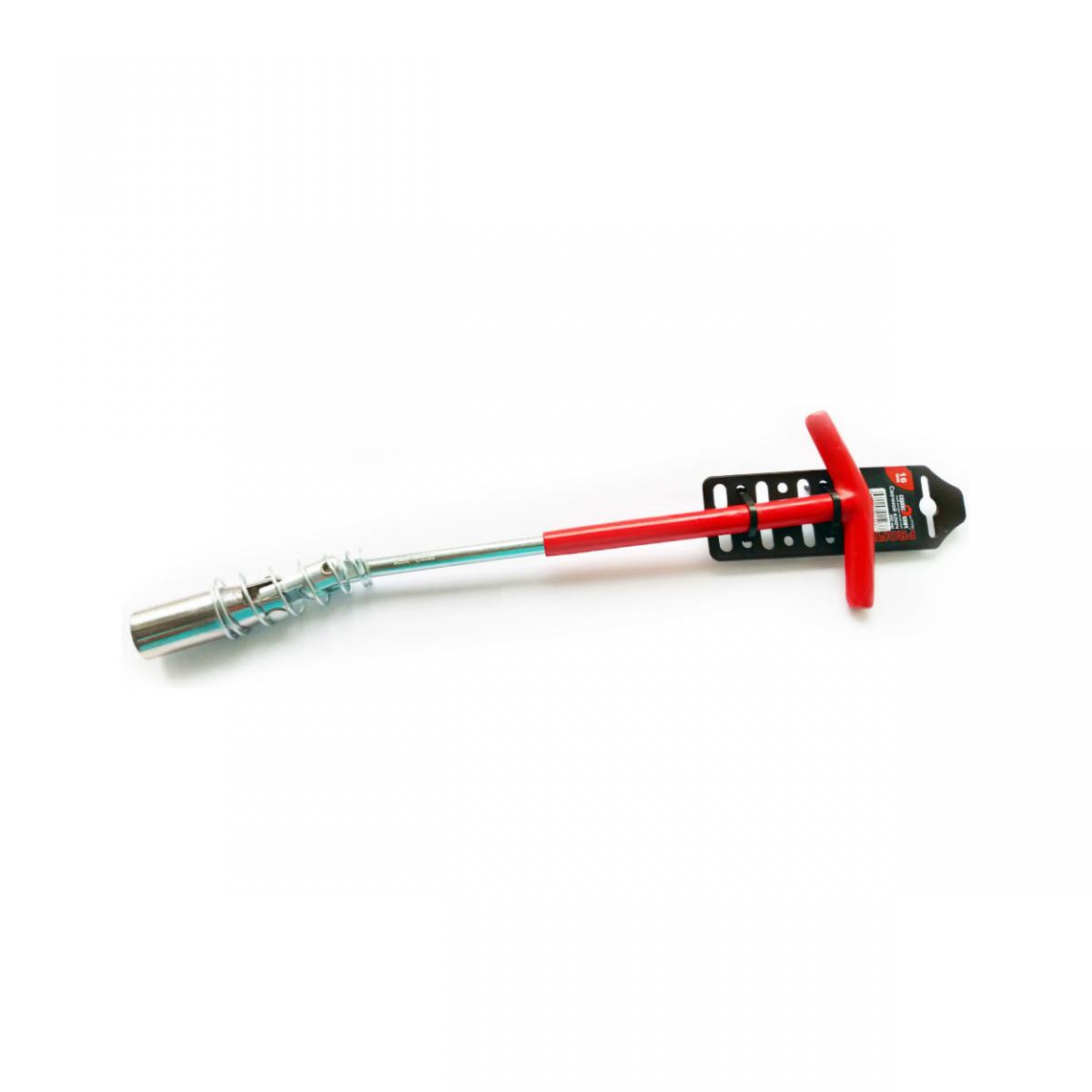 Ключ свечной преимущественно используется для откручивания и закручивания свечей зажигания, с размером головки под зев 16мм. Данная конструкция ключа имеет эффективный карданный механизм со стабилизирующей пружиной, благодаря которому обеспечивается более легкая и удобная установка, либо снятие свечей зажигания в двигателях автомобилей. Применение технологии горячей ковки позволило получить оптимальную структуру и высокие механические характеристики изделий в условиях неоднократного приложения максимальных нагрузок. Необходимую твердость свечных ключей гарантирует применение объемной термической обработки. Специальное покрытие, выбранное для нанесения на свечные ключи, обеспечивает защиту от коррозии при эксплуатации и хранении на открытом воздухе и в не отапливаемых помещениях.