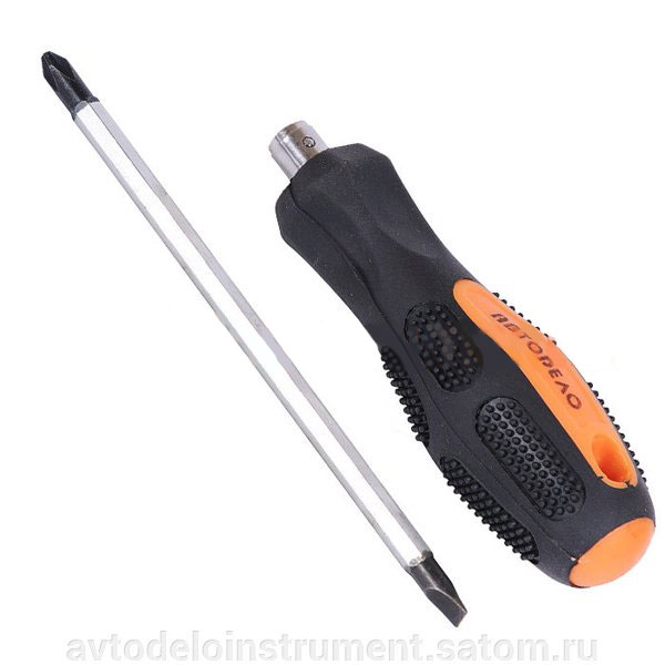 Отвертка комбинированная АВТОДЕЛО с рабочими профилями PH (Phillips или Филлипс) и SL (Slotted или Слоттед) применяется для работы с крестовым и прямым крепежом.