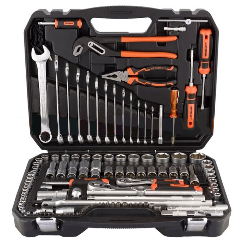 Комплектация набора профессионального инструмента оптимизирована для использования в автомобиле. Пожизненная гарантия (до полного физического износа). Торцевые головки изготовлены методом холодной штамповки. Профиль рабочей части головок шестигранный. В комплектации набора использованы комбинированные ключи повышенной точности, изготовленные методом холодной штамповки. Инструмент закален до твердости не менее 39 HRC. Применено хромовое защитно-декоративное покрытие с эффектом матовой поверхности. Набор упакован в двухцветный пластиковый чемодан с металлическими замками. Петли чемодана с металлическими осями.