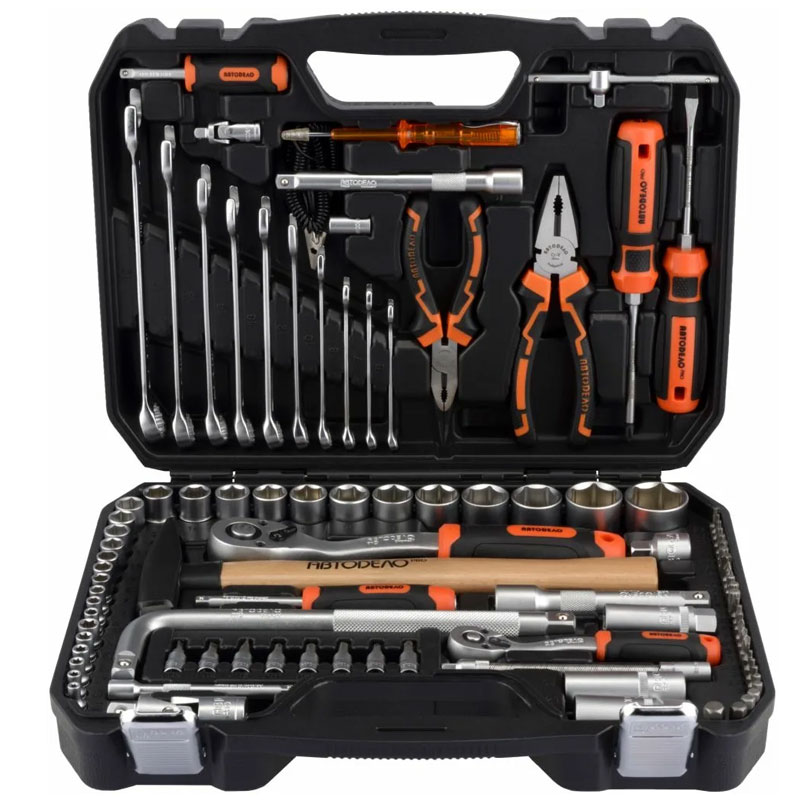 Комплектация набора профессионального инструмента оптимизирована для использования в автомобиле. Пожизненная гарантия (до полного физического износа). Торцевые головки изготовлены методом холодной штамповки. Профиль рабочей части торцевых головок выполнен в виде шестигранника. В комплектации набора использованы комбинированные ключи повышенной точности, изготовленные методом холодной штамповки. Инструмент закален до твердости не менее 39 HRC. Применено хромовое защитно-декоративное покрытие с эффектом матовой поверхности. Набор упакован в двухцветный пластиковый чемодан с металлическими замками. Петли чемодана с металлическими осями.