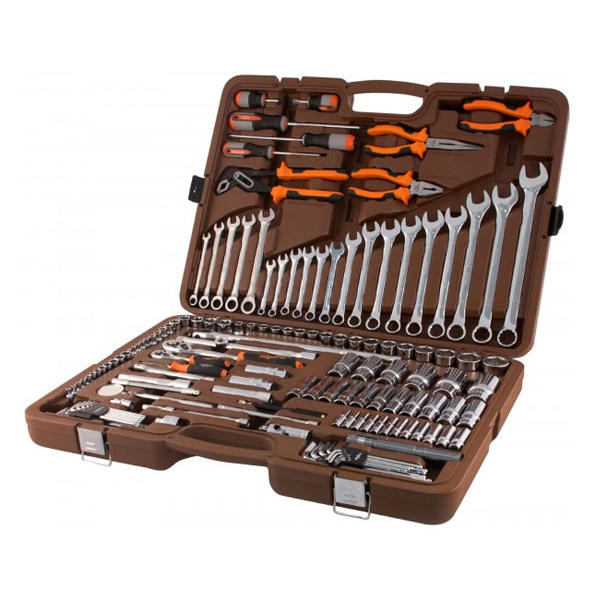 Универсальный многоцелевой набор инструмента, созданный для обеспечения рабочего процесса механика по обслуживанию продукции машиностроения, в первую очередь, автомобильной техники. Расширенная комплектация позволяет обслуживать резьбовые детали с шестигранными внешними рабочими профилями в диапазоне от 4 до 32 мм, в том числе заглубленные, болты внешний TORX®. Диапазон внутренних шестигранных и TORX® профилей покрывает потребности в основных размерах. Ассортимент представленных в наборе гаечных ключей расширен применением линейки изделий “SNAP GEAR”. Специальные аксессуары серьезно упростят задачу при поиске и обнаружении деталей в труднодоступных, малоосвещенных местах.