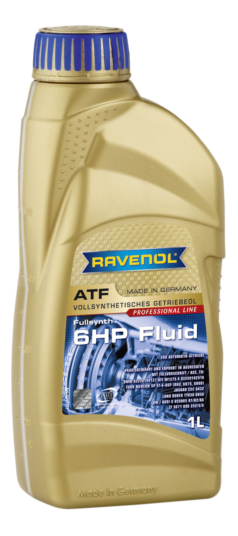 RAVENOL ATF 6HP Fluid - трансмиссионное масло для автоматических коробок передач на базе смеси гидрокрекингового базового масла и РАО со специальным пакетом присадок и ингибиторов, обеспечивающее бесперебойную работу трансмиссии.