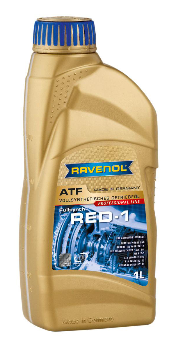 RAVENOL ATF RED-1 трансмиссионная жидкость для автоматических коробок передач последнего поколения, для современных 5-ти ступенчатых коробок передач A5SR1 и A5SR2 производства Hyundai Powertech для автомобилей KIA Sorento, KIA Mohave, Hyundai Genesis Coupe, Hyundai H-1. Обеспечивает максимальную защиту от износа при любом режиме эксплуатации. RAVENOL ATF RED-1 является жидкостью красного цвета.