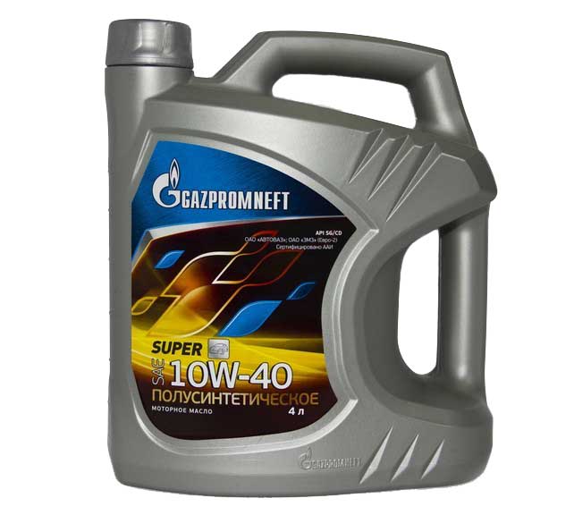 Купите полусинтетическое моторное масло Газпромнефть Super 10W-40 4л цена 1269 рублей. В наличии моторные масла 10W-40 от производителей: Bardahl, Castrol, Elf, ENEOS, G-Energy, General Motors, HI-GEAR, Idemitsu, Kixx, LADA, Lavr, LiquiMoly, Lubex, LUXE, Mannol, Micking, Mirax, Mobil, Motul, Mozer, NGN, NISSAN, RAVENOL, RIXX, ROLF, ROWE, Shell, Sintec, Takayama, TOTACHI, Total, UAZ, Unix, Valesco, Well Run, Wezzer, Yamalube, ZIC, Газпромнефть, Лукойл, Роснефть. Также в наличии полусинтетические масла 10W-40, масла для бензиновых типов двигателей.