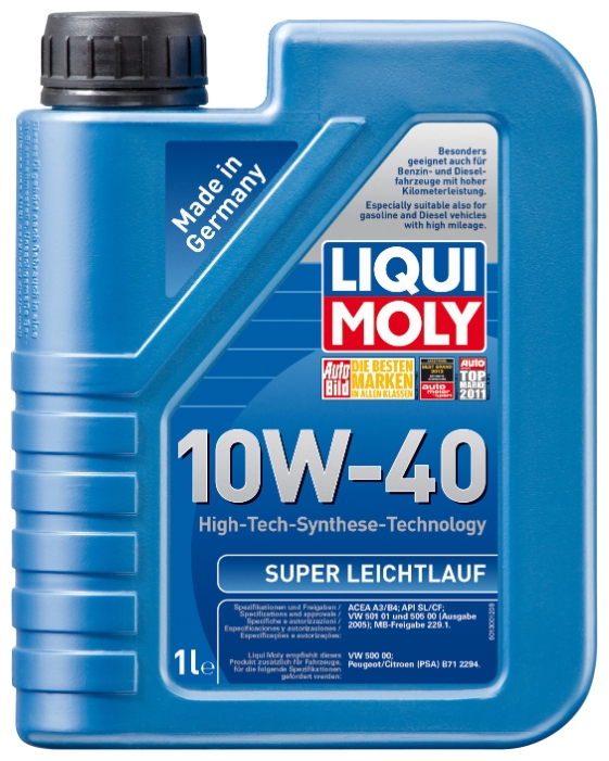 Купите полусинтетическое моторное масло LIQUI MOLY Super Leichtlauf 10W-40 1л цена 1181 рублей. В наличии моторные масла 10W-40 от производителей: Bardahl, Castrol, Elf, ENEOS, G-Energy, General Motors, HI-GEAR, Idemitsu, Kixx, LADA, Lavr, LiquiMoly, Lubex, LUXE, Mannol, Micking, Mirax, Mobil, Motul, Mozer, NGN, NISSAN, RAVENOL, RIXX, ROLF, ROWE, Shell, Sintec, Takayama, TOTACHI, Total, UAZ, Unix, Valesco, Well Run, Wezzer, Yamalube, ZIC, Газпромнефть, Лукойл, Роснефть. Также в наличии полусинтетические масла 10W-40, масла для бензиновых типов двигателей.