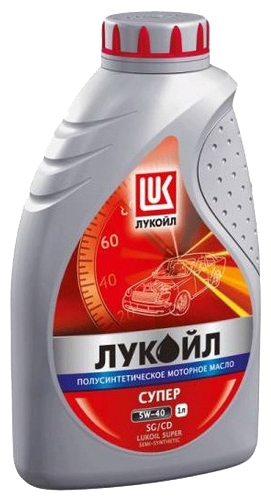 Купите полусинтетическое моторное масло Лукойл Супер API SG/CD 5W-40 1л цена 430 рублей. В наличии моторные масла 5W-40 от производителей: AUTOBACS, Bardahl, Elf, Ford, G-Energy, HI-GEAR, Idemitsu, Kixx, LADA, LiquiMoly, Mannol, Micking, Mirax, MITSUBISHI, Mobil, Motul, Mozer, Neste, NGN, NISSAN, RAVENOL, RIXX, ROLF, ROWE, Shell, Sintec, Takayama, TOTACHI, Total, TOYOTA, Unix, Valesco, Wezzer, ZIC, Газпромнефть, Лукойл, Роснефть. Также в наличии полусинтетические масла 5W-40, масла для бензиновых типов двигателей.