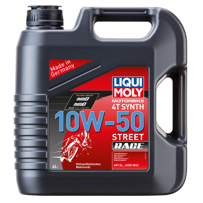 Купите синтетическое моторное масло Масло моторное 4-х тактное LIQUI MOLY Motorbike 4T Synth Street Race 10W50 SN MA2 (4 л) 7508 цена 6792 рублей. В наличии моторные масла 10W-50 от производителей: HI-GEAR, LiquiMoly, RAVENOL. Также в наличии синтетические масла 10W-50, масла для бензиновых типов двигателей.