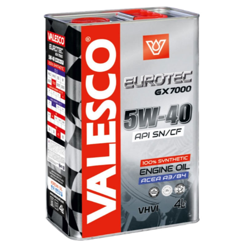 Купите синтетическое моторное масло Масло VALESCO EUROTEC GX 7000 5W-40 API SN/CF синтетическое 4л 4 цена 2754 рублей. В наличии моторные масла 5W-40 от производителей: AUTOBACS, Bardahl, Elf, Ford, G-Energy, HI-GEAR, Idemitsu, Kixx, LADA, LiquiMoly, Mannol, Micking, Mirax, MITSUBISHI, Mobil, Motul, Mozer, Neste, NGN, NISSAN, RAVENOL, RIXX, ROLF, ROWE, Shell, Sintec, Takayama, TOTACHI, Total, TOYOTA, Unix, Valesco, Wezzer, ZIC, Газпромнефть, Лукойл, Роснефть. Также в наличии синтетические масла 5W-40, масла для универсальный (бензиновый и дизельныых типов двигателей.