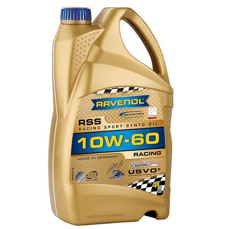 RAVENOL RSS Racing Sport Synto 10W-60 – полностью синтетическое, легкотекучее, обеспечивающее экономию топлива гоночное моторное масло, разработанное на основе смеси синтетического, высокополярного базового масла Группы V с добавлением полиальфаолефинов высокой и низкой вязкости, что обеспечивает улучшенный индекс вязкости.