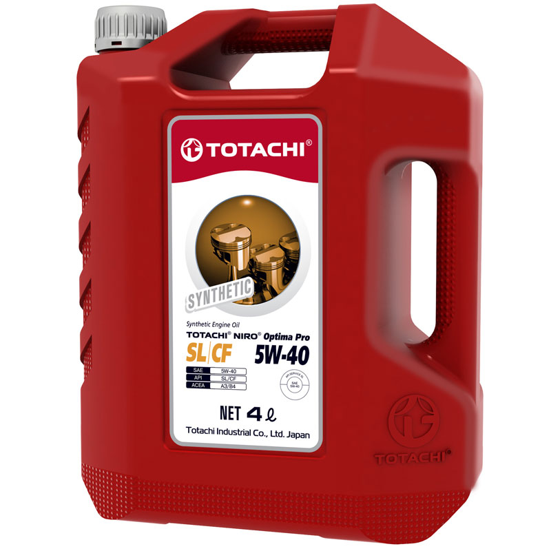 Купите синтетическое моторное масло TOTACHI NIRO Optima PRO Synthetic 5w-40 SL/CF пласт. 4л цена 1668 рублей. В наличии моторные масла 5W-40 от производителей: AUTOBACS, Bardahl, Elf, Ford, G-Energy, HI-GEAR, Idemitsu, Kixx, LADA, LiquiMoly, Mannol, Micking, Mirax, MITSUBISHI, Mobil, Motul, Mozer, Neste, NGN, NISSAN, RAVENOL, RIXX, ROLF, ROWE, Shell, Sintec, Takayama, TOTACHI, Total, TOYOTA, Unix, Valesco, Wezzer, ZIC, Газпромнефть, Лукойл, Роснефть. Также в наличии синтетические масла 5W-40, масла для универсальный (бензиновый и дизельныых типов двигателей.