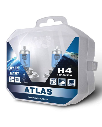 Лампа галогенная 12В H4 60/55Вт 5000К 2 шт. бокс Atlas AVS (A78908S)