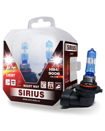 Главная / Каталог автомобильных товаров / Автосвет / Галогеновые лампы / Лампа галогенная 12В HB4 55Вт 110% 2 шт. Sirius Night Way AVS (A78948S)