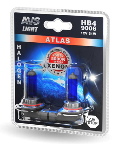 Лампа галогенная 12В HB4 55Вт 5000К 2 шт. Atlas AVS (A78573S)