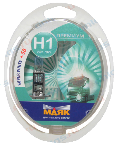 Лампа галогенная 24В H1 70Вт Super White +50% 2 шт. Маяк (14130-50)