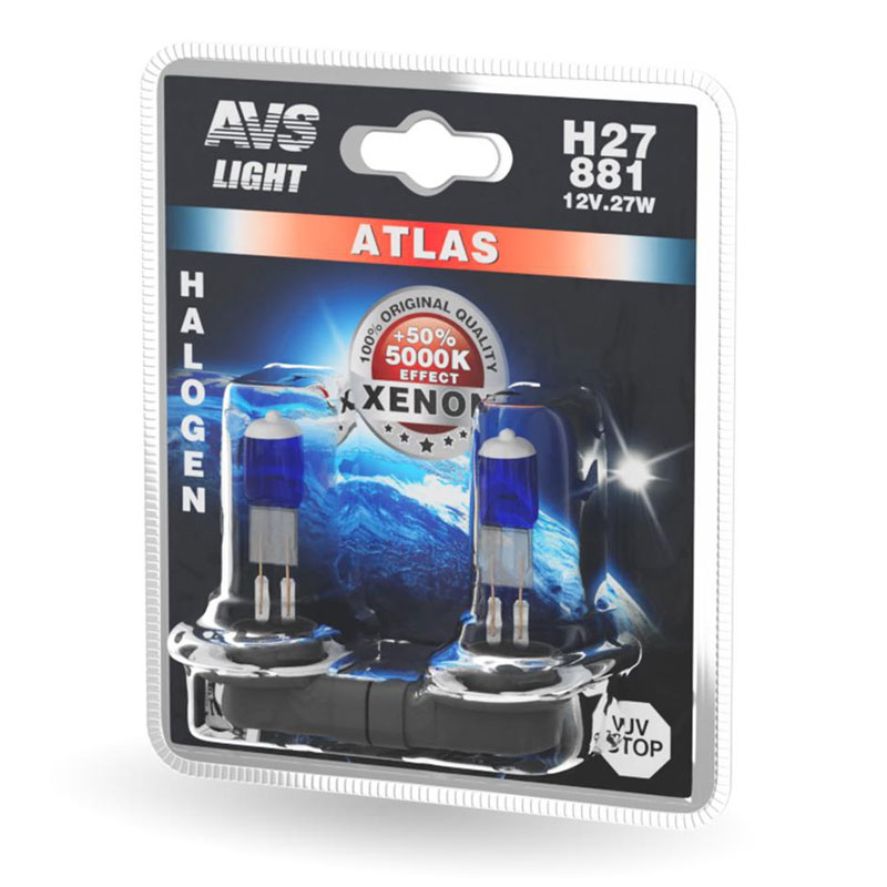 Технические характеристики товара «Лампа галогенная AVS 5000К Atlas 12В H27/881 27Вт блистер 2шт. A78567S»