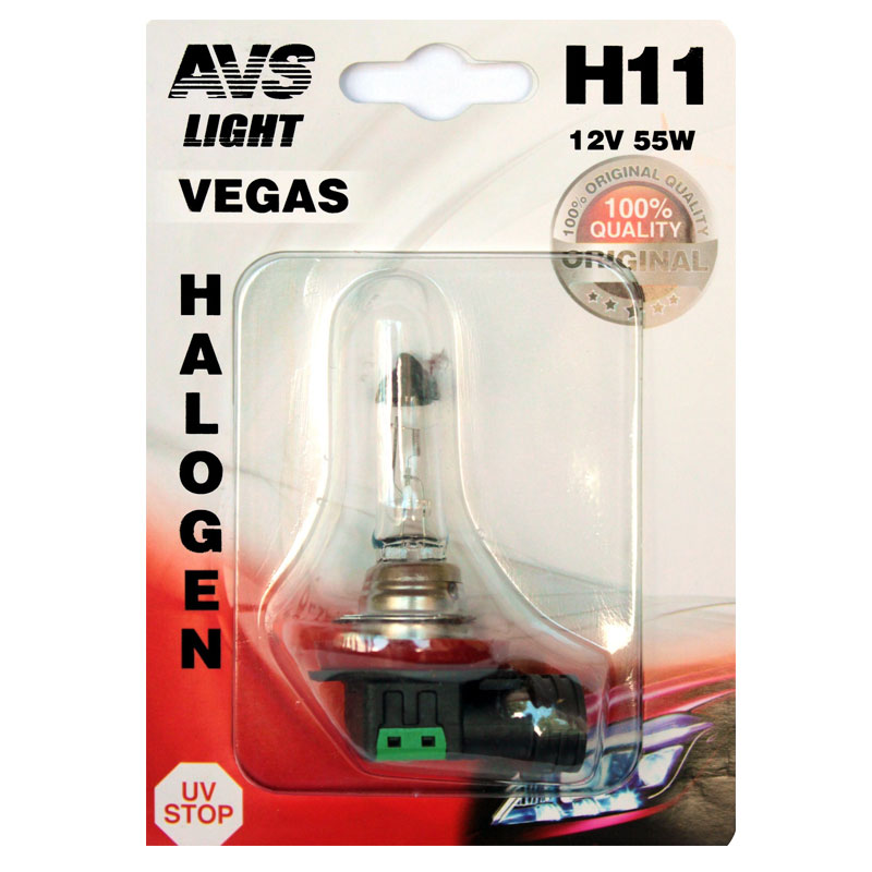 Главная / Каталог автомобильных товаров / Автосвет / Галогеновые лампы / Лампа галогенная AVS Vegas 12В H11 55Вт блистер A78480S