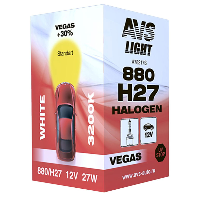 Главная / Каталог автомобильных товаров / Автосвет / Галогеновые лампы / Лампа галогенная AVS Vegas 12В H27/880 27Вт A78217S