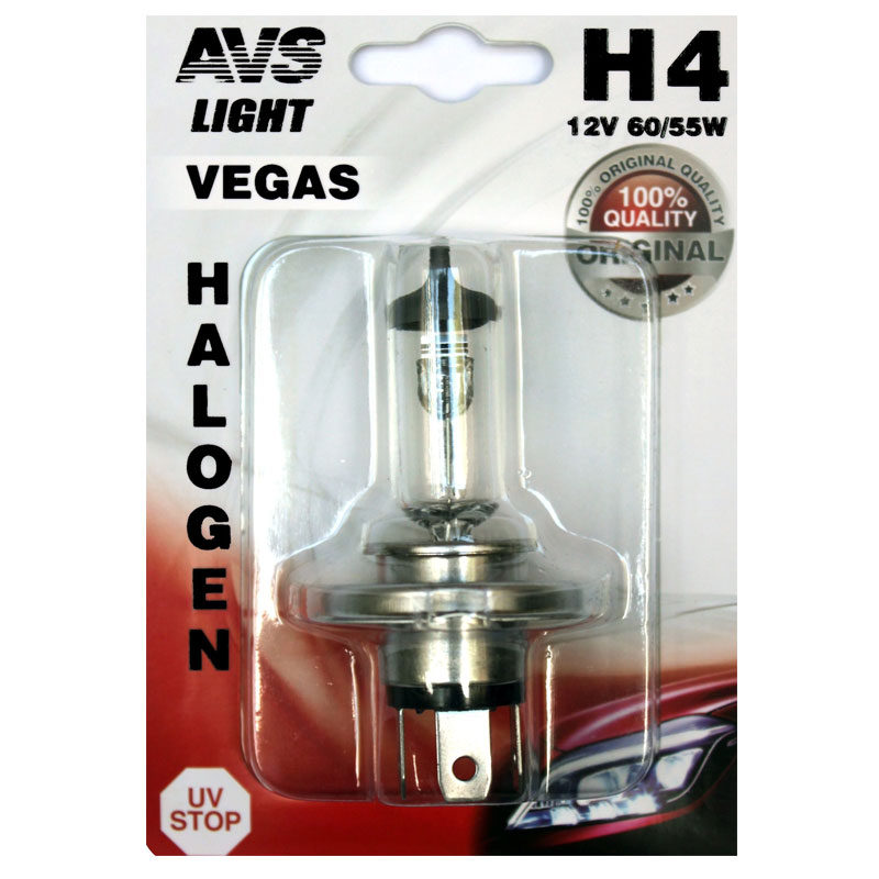 Главная / Каталог автомобильных товаров / Автосвет / Галогеновые лампы / Лампа галогенная AVS Vegas 12В H4 60/55Вт блистер A78482S