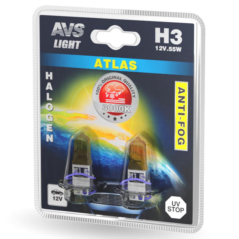Технические характеристики товара «Лампа галогенная AVS всесезонная Anti-Fog Atlas 12В H3 55Вт на п/туманные фары блистер 2шт. A78622S»