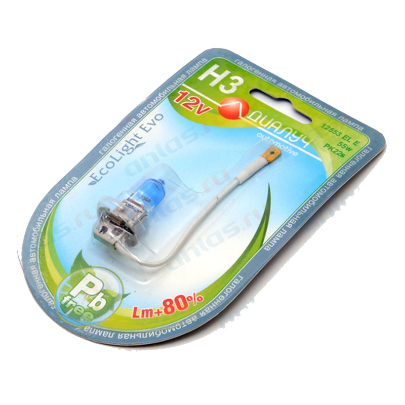 Главная / Каталог автомобильных товаров / Автосвет / Галогеновые лампы / Лампа галогенная Диалуч 80% 4500K 12В H3 55Вт на п/туманные фары 12553 EL Evo (бл)