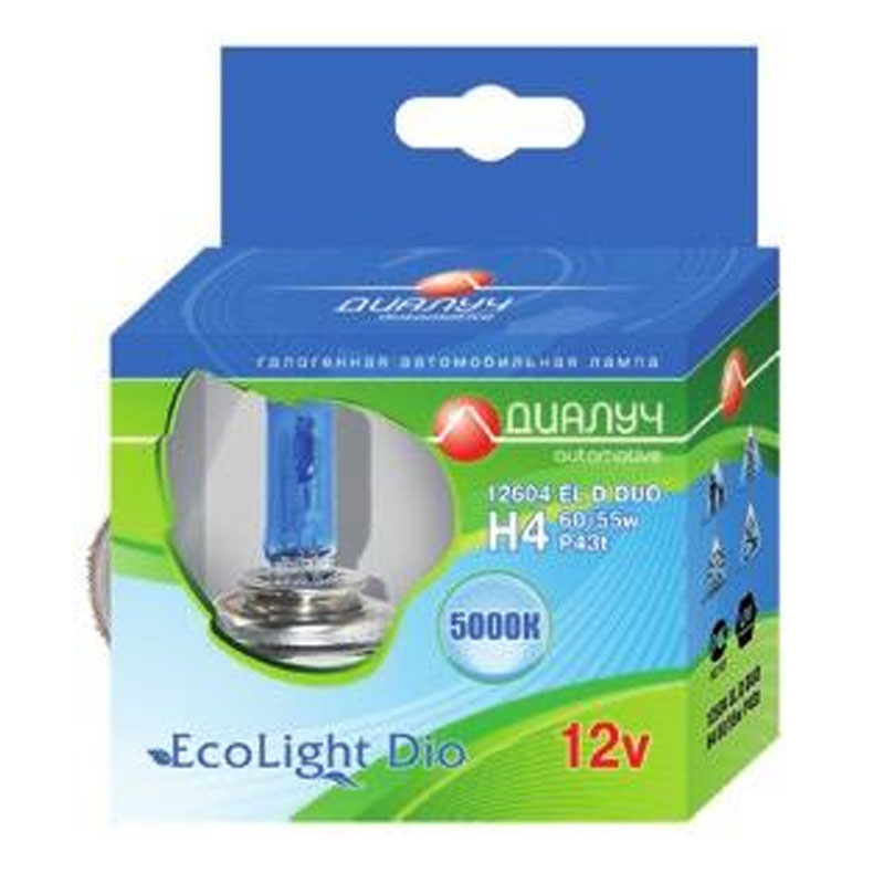 По Свердловской Области доставка Лампа галогенная Диалуч Р43 Eco Light 5000К 12В H4 60/55Вт 2шт. 12604 EL Dio-2 в города: Нижний Тагил, Каменск-Уральский, Первоуральск, Серов, Новоуральск, Асбест, Полевской, Верхняя Пышма, Ревда, Краснотурьинск, Берёзовский, Лесной, Верхняя Салда, Качканар, Красноуфимск, Алапаевск, Ирбит, Реж, Тавда, Сухой Лог, Артёмовский, Богданович.