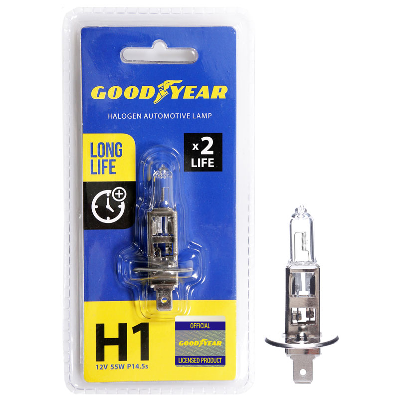 Главная / Каталог автомобильных товаров / Автосвет / Галогеновые лампы / Лампа галогенная Goodyear Long Life 12В H1 55Вт блистер GY011123