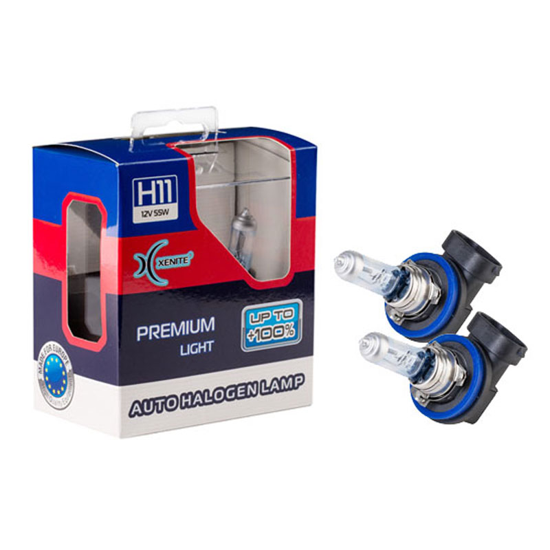 Главная / Каталог автомобильных товаров / Автосвет / Галогеновые лампы / Лампа галогенная Xenite PGJ19-2 100% 12В H11 55Вт 2шт. 1007118