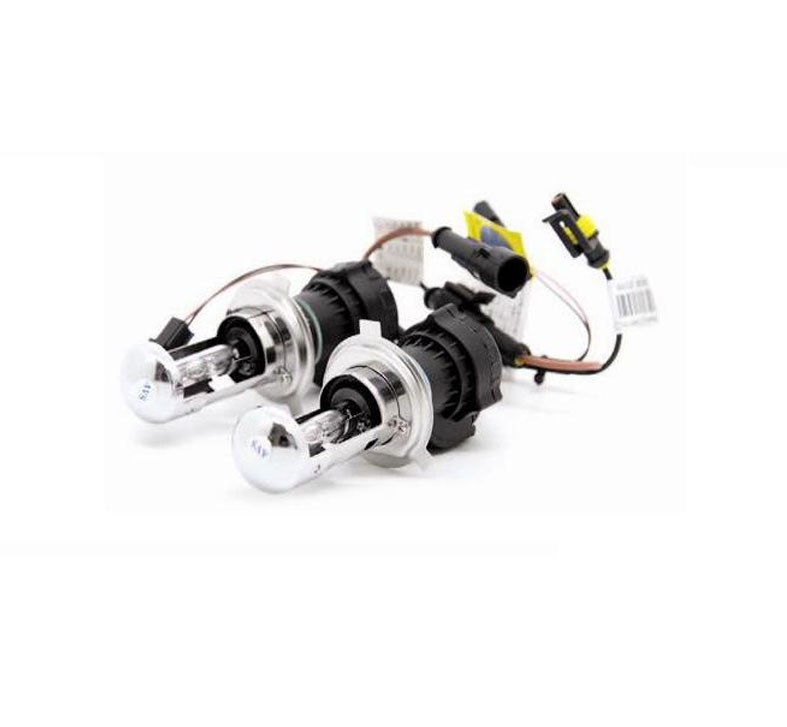 Биксеноновые лампы от простого ксенона отличается наличием биксеноновой проводки управляющей переключением биксеноновой лампы с ближнего света на дальний. Электромагнитный привод перемещает колбу лампы вперед-назад, тем самым меняется фокусировка освещения.