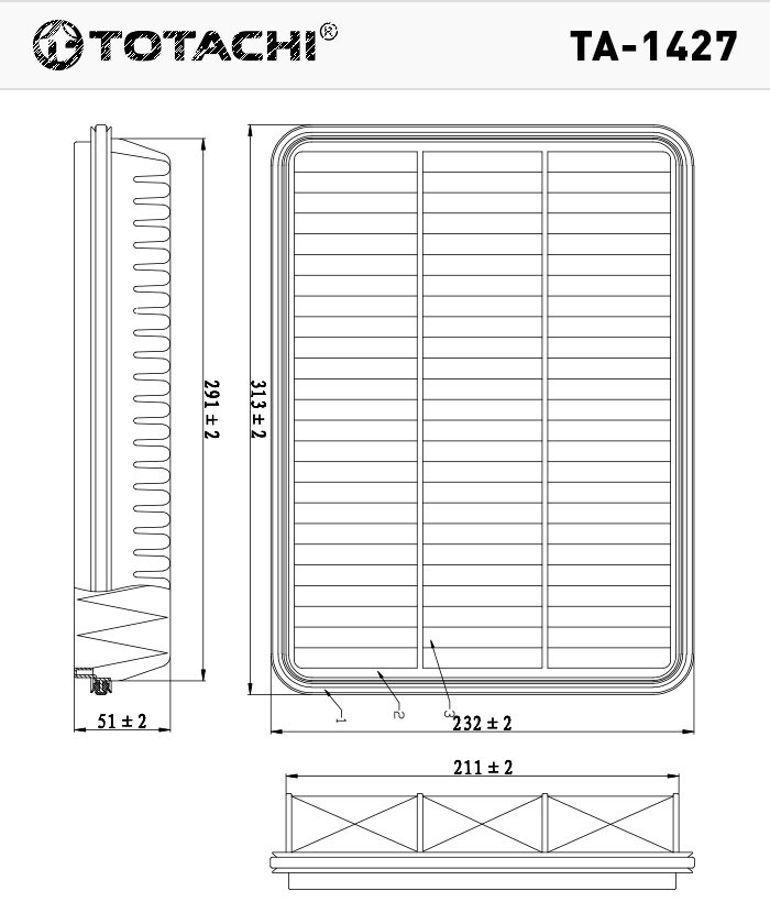 Технические характеристики товара «Фильтр воздушный TOTACHI TA-1427 (17801-50040)»