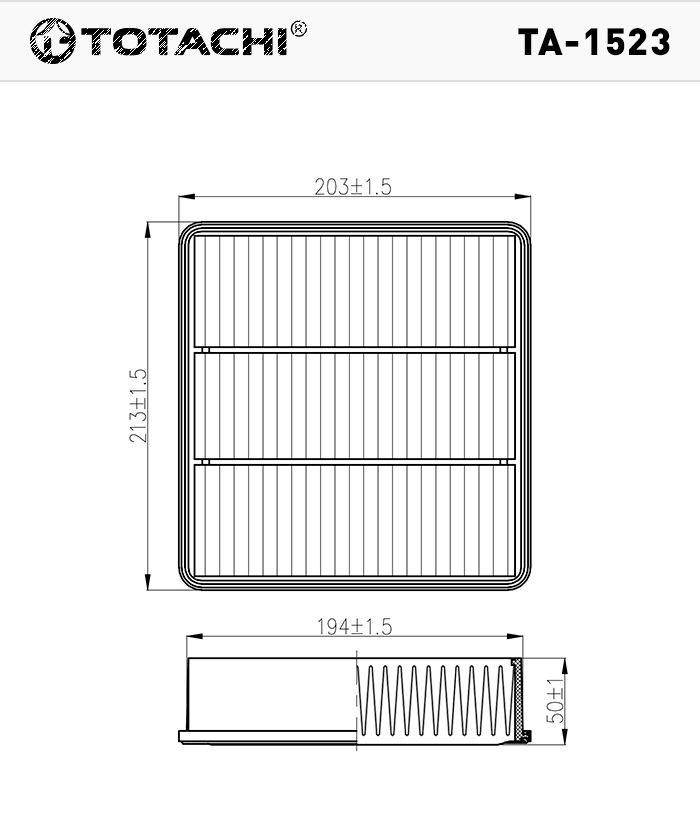 Технические характеристики товара «Фильтр воздушный TOTACHI TA-1523 (MR188657)»