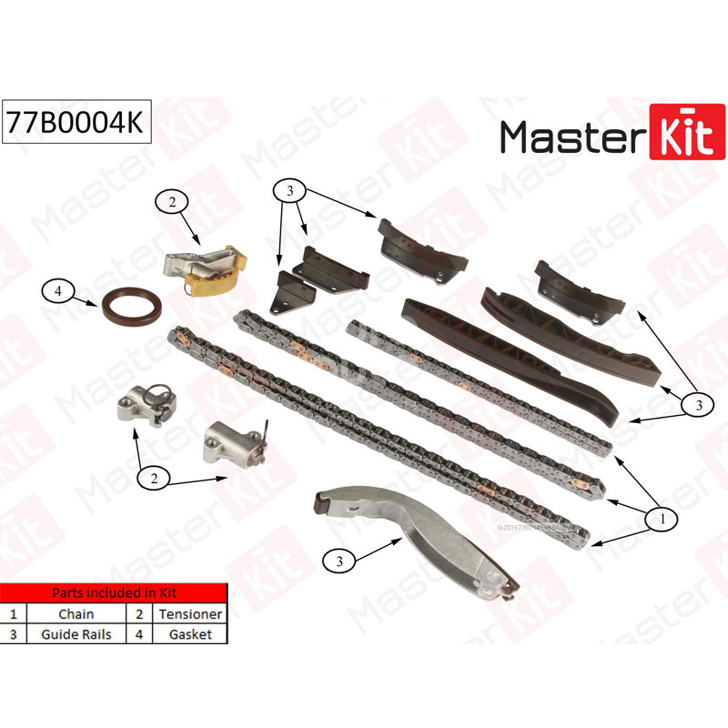 Технические характеристики товара «Комплект цепи ГРМ MasterKit KIA Sorento 2.5 CRDi 138/168kW D4CB 02-10 без звездочек 77B0004K»